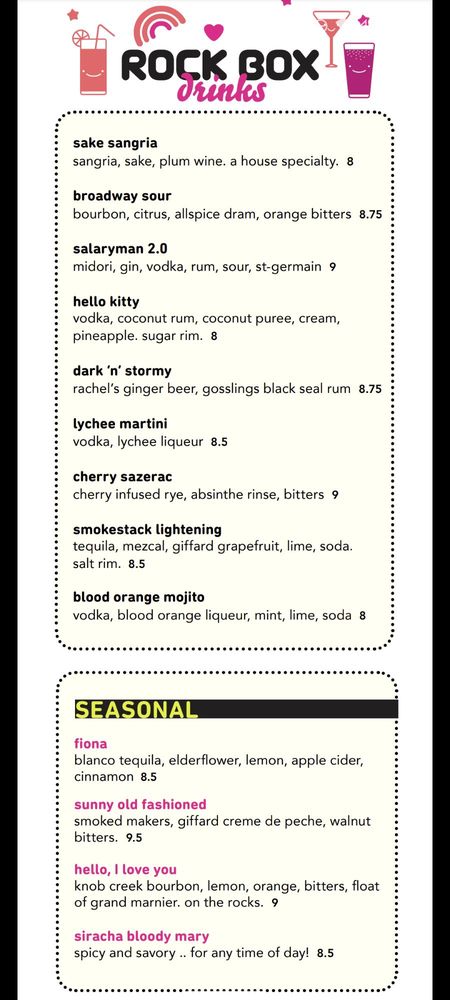 Rock Box is a trendy and classy Asian-owned restaurant in Seattle, WA, known for its lively atmosphere and karaoke nights. The restaurant offers a variety of amenities like outdoor seating, pool tables, and a full bar, making it a perfect spot for groups looking to have a fun night out. With delicious food, happy hour specials, and heated outdoor seating, Rock Box is the ideal location for dancing and enjoying a great time with friends. Make sure to visit on Fridays, Saturdays, or Sundays for the best experience at Rock Box.